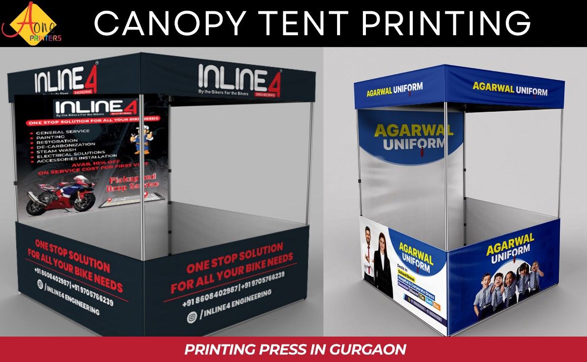 Canopies are small tents that are easily kept in a bag and you can carry it anywhere. Canopy is made up of very lightweight material aluminum and a cloth named flexes either normal flex or star flexes printing. Canopies are of different sizes varying from 4 x 4 feet tents, 6x6 feet tents, and 10x10 feet tents. Get the best quality canopy at A-One Printers. Visit us at www.aoneprinters.com There are various benefits of canopy printing in gurgaon as below: